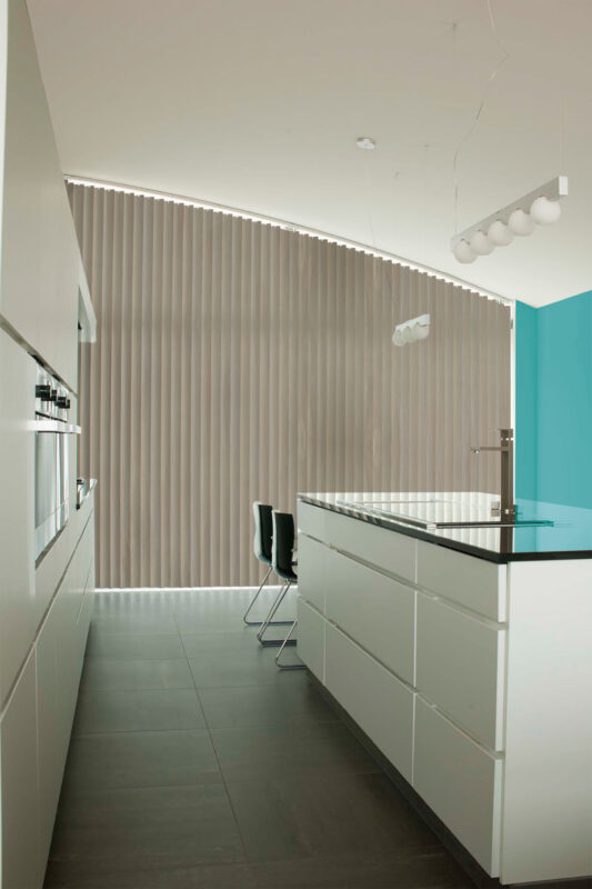 maßgefertigte Lamellenvorhänge in gerader, schräger oder gebogener Ausführung